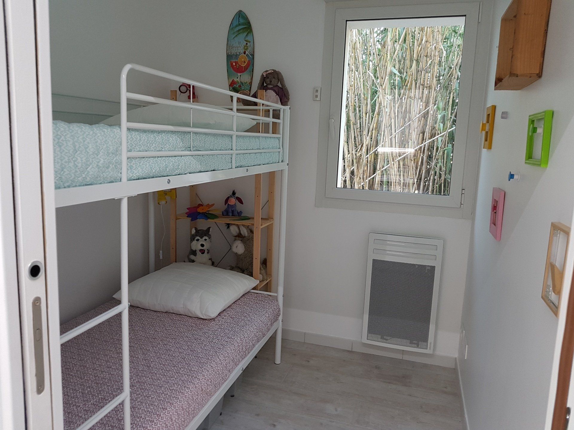 3 Chambres avec 1 Lit (160x190cm), 1 lit (140x190cm), 2 lits superposés et 1 lit (90x190cm)